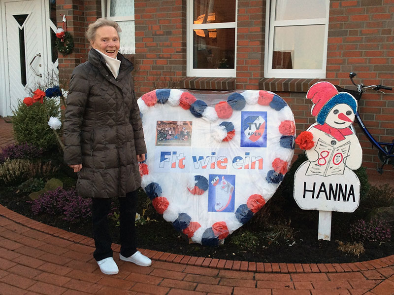 Passend zu diesem Motto überraschte die Turngruppe des TV Apen, unter der Leitung von Irmgard Neumann, am gestrigen Sonntag Hanna Mundt zum 80. Geburtstag.