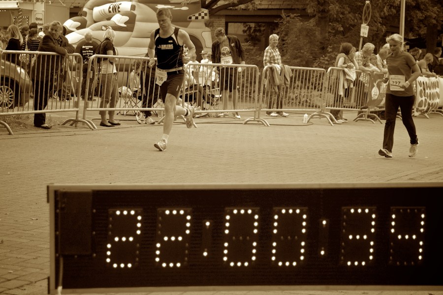 Um 7:00 Uhr morgens lagen wir auf Platz 4 mit etwas mehr als 2 Runden Rückstand auf Platz drei. Wir waren in der Nacht einfach zu langsam und es waren nur noch 5 Stunden. Wir mussten etwas tun. Also stellten wir die Mannschaft taktisch etwas um und die angeschlagenen Teammitglieder liefen nicht mehr jede Runde. Dadurch mussten die anderen zwar mehr laufen aber da sich alle gegenseitig pushten war das kein Problem. Die Sonne kam raus, die Müdigkeit war weg, die Zeiten wurden wieder schneller und nach jeder Runde starrte man auf den Monitor mit der Rangliste. Wir holten auf und eine Stunde vor dem Ende wussten wir, wir haben es geschafft. Aus 2,5 KM Rückstand hatten wir mehr als 4 KM Vorsprung rausgelaufen. Und nach 23 Stunde, 59 Minuten und 43 Sekunden liefen dann alle zusammen mit Gänsehaut über die Strecke.