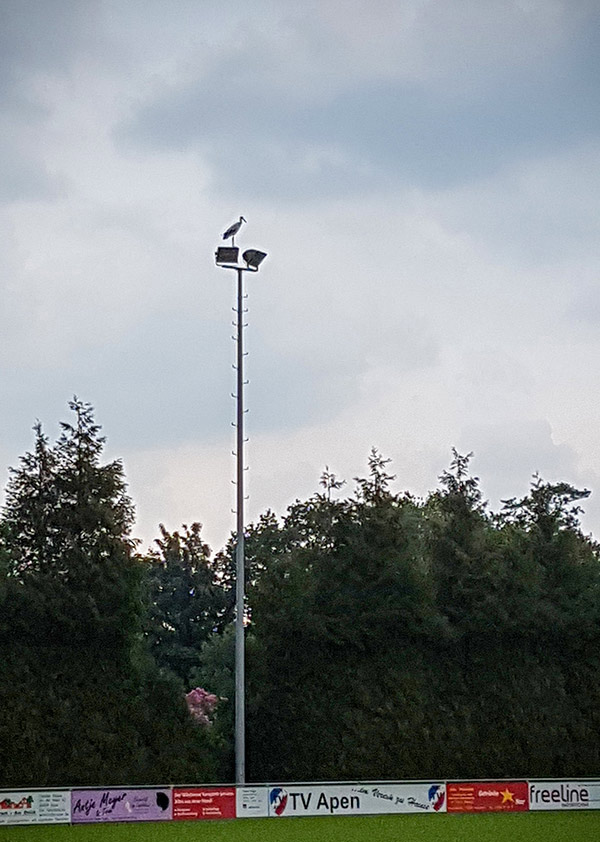 Unter ganz besonderer Beobachtung stehen zurzeit unsere Fußballer. Während des Qualipokalspiels zwischen unserer Zwoten und der SG Halsbek III wurde ca. 10 Minuten vor Schluss ein Storch gesichtet!