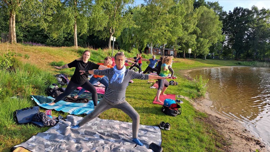 Am 25. Juni unternahm unser Yoga-Abteilung einen ganz besonderen Ausflug - diesmal motiviert durch eine vorübergehende Hallensperrung für den Verein. Die beiden Trainerinnen Karin Dreesmann und Veronika Schmidt hatten ein abwechslungsreiches Programm vorbereitet: Die Tour begann an der Aper Turnhalle, wo sich die Gruppe zur gemeinsamen Fahrradtour in Richtung Karlshof bei Ocholt aufmachte.