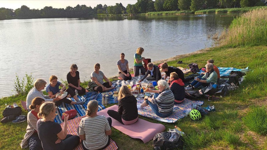 Das Wetter hätte nicht besser sein können - milde 20 Grad und strahlender Himmel begleiteten die Teilnehmenden auf dem Weg. Am Ziel angekommen erwartete die Gruppe eine ganz besondere Yoga-Einheit direkt am See. Die friedliche Atmosphäre, das leise Plätschern des Wassers und die frische Brise verliehen den Übungen eine fast meditative Tiefe. Im Anschluss wurde auf Picknickdecken ein buntes Buffet aufgebaut - jeder hatte etwas beigetragen, und so entstand eine herzliche Runde, geprägt von Austausch, Lachen und Genuss.