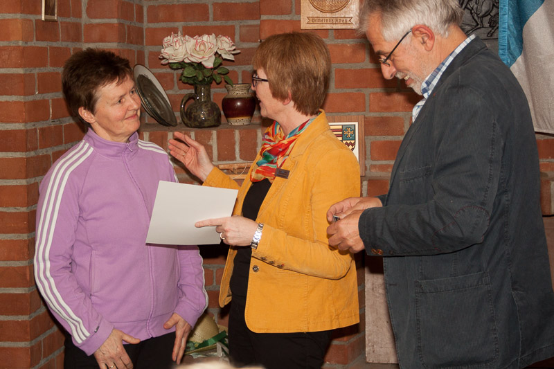 Begleitet wurde die Veranstaltung von Monika Wiemken vom Kreissportbund Ammerland, die in einigen einführenden Worten auch das Engagement des TV Apen und seine gegen den Trend steigenden Mitgliedszahlen lobte. Neben warmen Worten überbrachte sie auch Ehrenamtsauszeichnungen des Kreissportbundes Ammerland: Mit Rudi Blanke, Inge Coordes, Klaas Epkes und Irmgard Neumann wurden gleich 4 Mitglieder des TV für ihren überdurchschnittlichen und langjährigen Einsatz für das Ehrenamt im TV ausgezeichnet. Wilhelm Funk schloss sich mit der Ehrung langjähriger Mitglieder an: Wilfried Frerichs und Gerold Janßen erhielten die silberne Verdienstnadel nebst Urkunde für 40-jährige Mitgliedschaft im TV Apen.