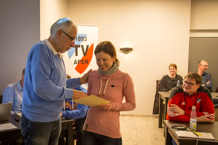 Eine weitere Ehrung erfuhr Bärbel zu Klampen: Sie ist seit 1976 treues Mitglied des Vereins und und erhielt dementsprechend eine Urkunde sowie die Ehrennadel für 40-jährige Mitgliedschaft: