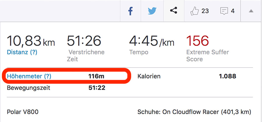 Die Strecke hatte es wirklich in sich und die Ankündigung leicht hügelig war an Untertreibung nicht zu überbieten. Schmale Wege, auf denen der Veranstalter die hervorstehenden Baumwurzeln mit weißer Farbe markiert hatte, wechselten sich mit engen Kurven und Bergen ab. Ja, genau, Berge! Am Ende der vier Runden wies die Polar Uhr von Sven tatsächlich 116 Höhenmeter aus. Und das in einem Wald von Ostfriesland.