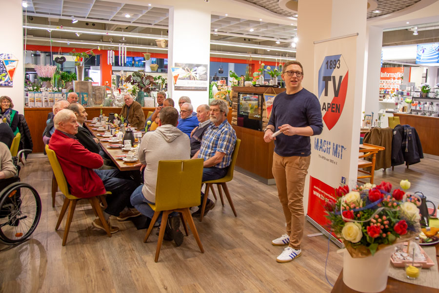 Vorstandsmitglied Christian Martens gab noch einige aktuelle Informationen aus unserem Verein zum besten, bevor anschließend bei Schnittchen, Kaffee, Tee und Kaltgetränken gesellig Geschichten aus den vielen blauweißroten Erinnerungen ausgetauscht wurden. Dem Bistro-Team von Petra Jurkatis gebührt hierfür ein besonderer Dank, sowohl das Essen als auch der Service waren ganz hervorragend! Als bleibende Erinnerung an diesen Abend erhielt jedes Mitglied zudem einen schicken Kaffeebecher mit TV-Wappen für zu Hause, den uns unser Partner GravurXXL aus Edewecht innerhalb kürzester Zeit individuell produziert hat!