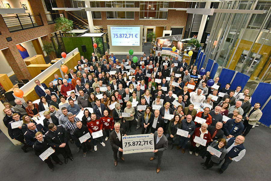 Insgesamt wurden 86 Vereine der Region mit 75.872,71€ unterstützt, wahrlich eine stattliche Summe! Wir bedanken uns auch an dieser Stelle ganz herzlich bei der Volksbank für die tolle Unterstützung!