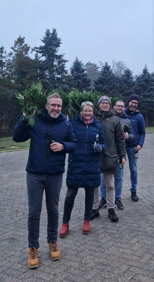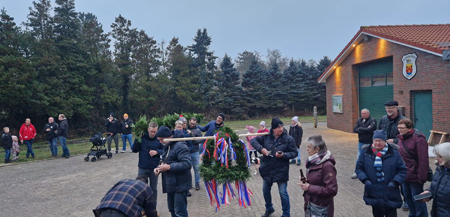 Unsere Nachbarn vom Sportfischer-Verein, dem Schützenverein und dem Ortsbürgerverein waren so nett, uns zum erreichten Meilenstein unserer Aufstockungsmaßnahme eine tolle Richtkrone zu binden. Diese wurde heute im Rahmen des Richtfestes gebührend angebracht und natürlich auch begossen.