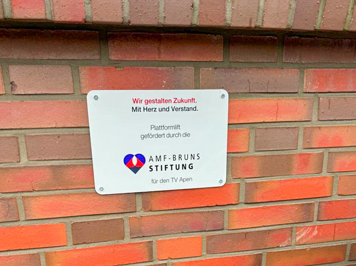 Ermöglicht wurde das unter anderem durch die Unterstützung der AMF-Bruns Stiftung. Denn eines der Förderkriterien war der vollständige barrierefreie Zugang zum Gebäude. Dafür haben wir ein behindertengerechtes WC eingebaut sowie ein Treppenlift angeschafft, um auch den barrierefreien Zugang zum Obergeschoss zu gewährleisten. Und die AMF-Bruns-Stiftung hat uns hierbei erheblich geholfen: Durch eine Förderung in Höhe von 13.000 € konnte dieser Treppenlift angeschafft werden. Die AMF-Bruns Stiftung unterstützt vor allem, wenn es darum geht, Menschen mit Handicap leichter in die Gesellschaft zu integrieren.
