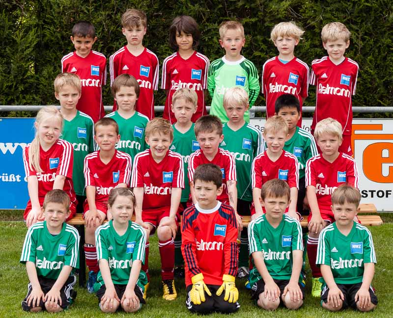 Zum anderen konnte man bei einer Trikotaktion der Nordwest-Zeitung in Zusammenarbeit mit Fielmann einen neuen Trikotsatz gewinnen. Oben auf dem linken Bild seht ihr die neuen Aufwärmpullover, auf dem rechten Bild unsere Kicker in roten Trikots gemeinsam mit dem Gegner vom TuS Büppel, der ebenfalls Trikots bei der Aktion gewonnen hat in grünen Trikots. Das Spiel dieser beiden Teams konnte der TuS Büppel am Freitag übrigens mit 4:3 für sich entscheiden.