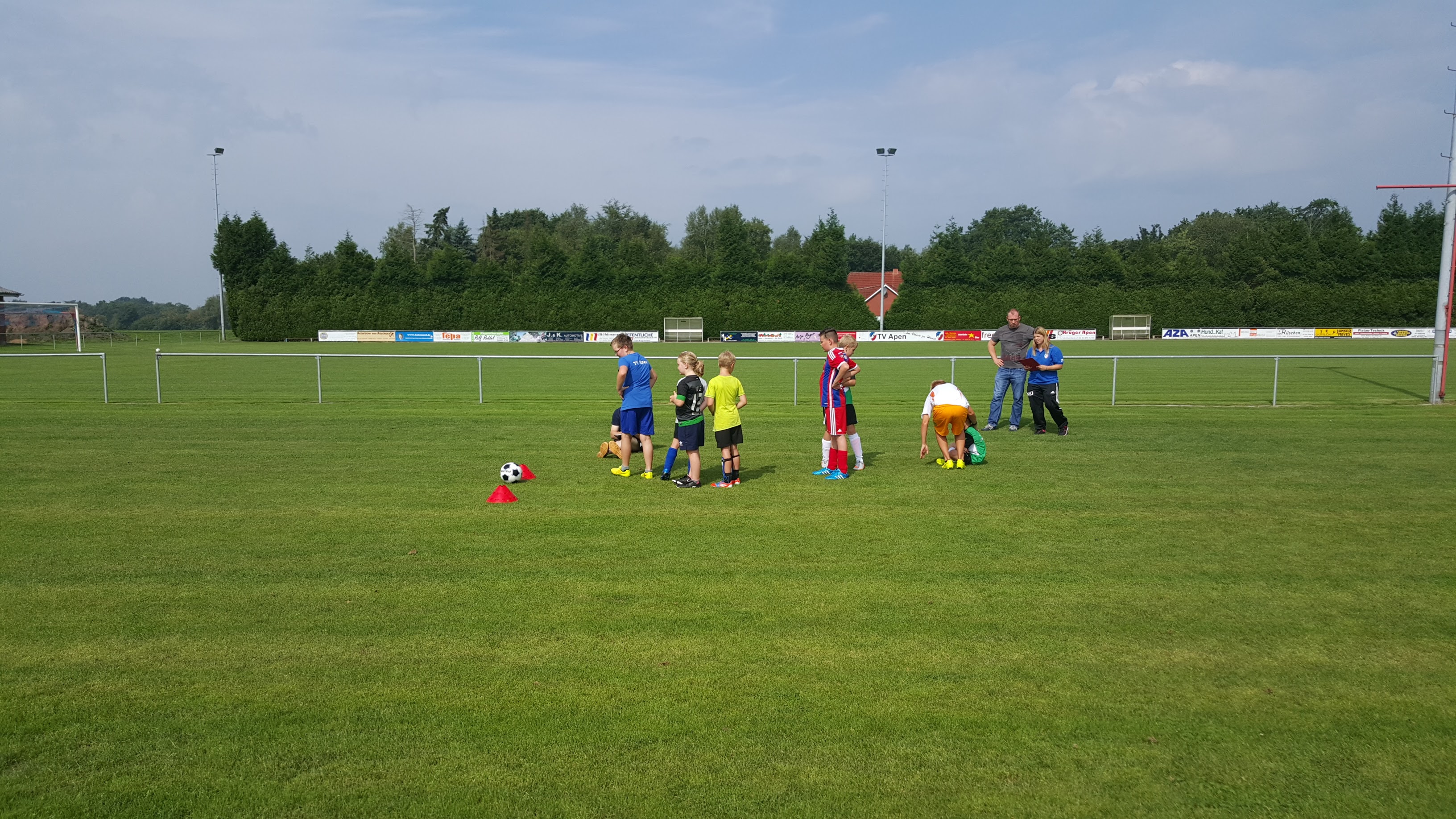 Bei unterschiedlichen Stationen konnten die Nachwuchskicker ihr Können unter anderem im Dribbling, Passen und Torschuss unter Beweis stellen. Beendet wurde die Ferienpassaktion durch ein tolles Abschlussspiel und zur Stärkung gab es anschließend leckere Bratwurst und reichlich Kaltgetränke. Für den TV waren Melanie Ulrich, Heiko Kreklau, Florian Hobbie, Daniel Czarnetzki und Kai Emmel im Einsatz und sorgten wieder einmal für eine erfolgreiche Veranstaltung im Rahmen der Ferienpassaktion der Gemeinde Apen.