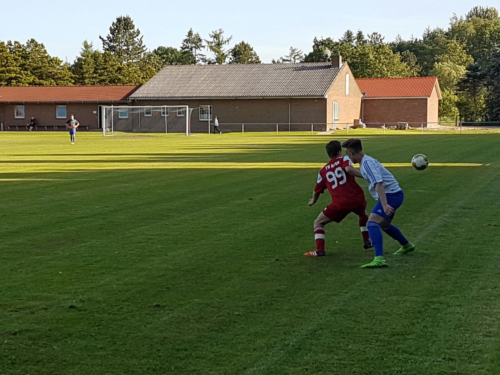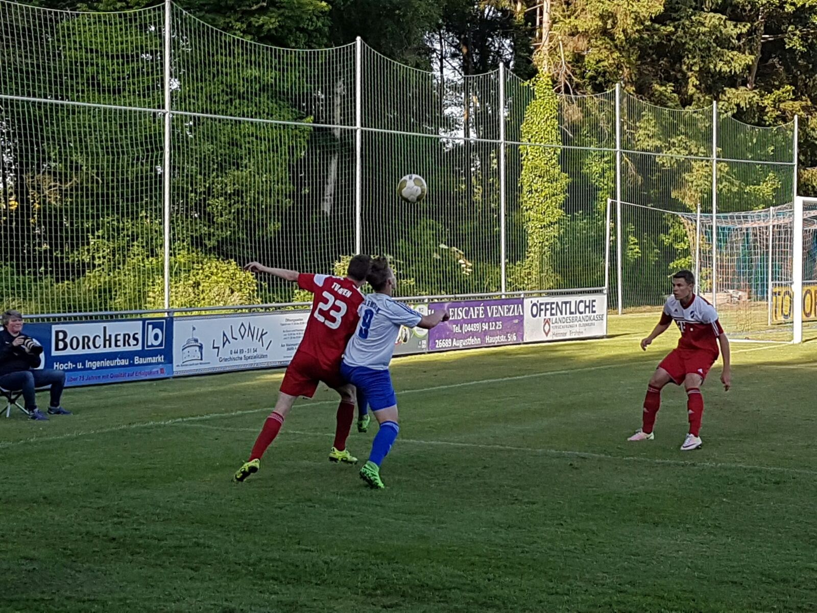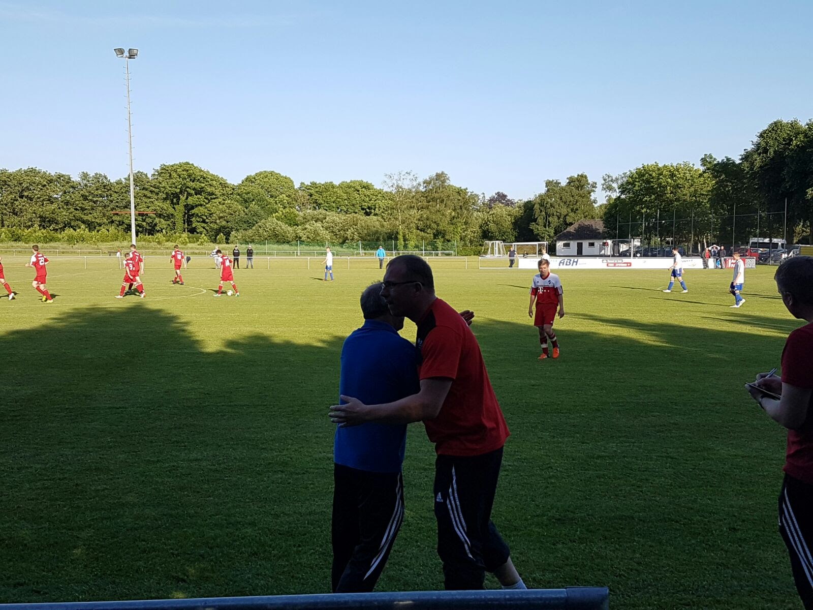 Erstmals in dieser Spielzeit konnte das Trainerteam kadertechnisch aus dem Vollen schöpfen. Wohlwissend, dass die Gäste mit ganz breiter Brust, nach dem 10:1 Sieg gegen den VfL Löningen, auftreten werden, war die taktische Ausrichtung etwas defensiver eingestellt. Es entwickelte sich ein flottes und offenes Fußballspiel, allerdings ohne große Torchancen. So war es untypisch zur eigentlichen Chancenverwertung, dass der kurz zuvor eingewechselte Niklas Lährl mit der ersten richtigen Torchance das 1:0 markierte. Zuvor erkämpfte Paul Borchers den Ball klasse zurück und Fabian Rosendahl spielte Niklas Lährl den Ball perfekt in den Lauf. Nur wenige Sekunden später wurde ein Freistoß von den Gästen nicht richtig geklärt und Fabian Rosendahl verwandelte trocken mit links. Jetzt waren die Hausherren deutlich am Drücker und drängten auf das 3:0. Da kamen die Gäste zu ihrer ersten Torchance, doch Nikolai Schöneich parierte stark. Kurz vor der Halbzeit landete der Ball zum dritten Mal in den Maschen der Gäste. Nach einer Ecke ließ der Torhüter unter gegnerischen Bedrängnis den Ball fallen und Nils Mundt reagierte am schnellsten. Doch unter dem Jubel pfiff der Schiedsrichter das Tor zurück und entschied auf Freistoß. Eine Entscheidung die man nicht treffen muss, aber sicher kann. So ging es mit dem 2:0 in die Halbzeitpause.