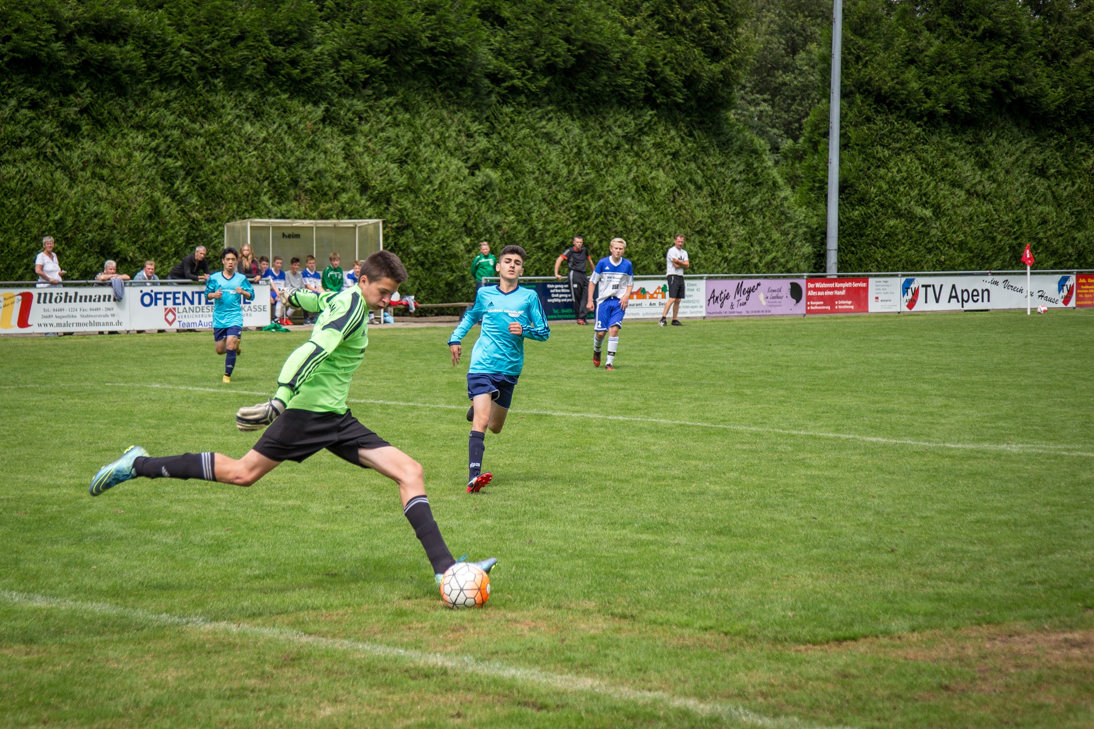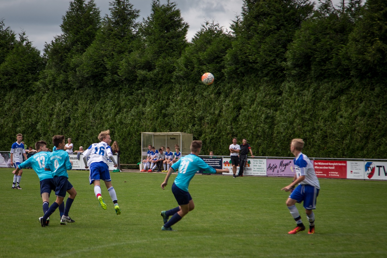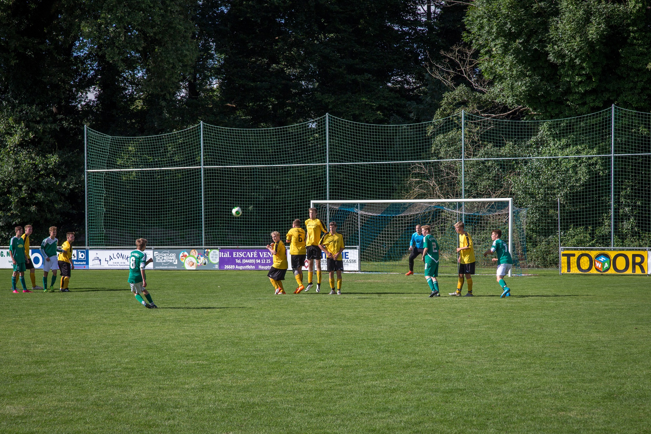 Bei besten Rahmenbedingungen kam es zu interessanten Partien und sehenswerten Toren. Beim U17-Cup bestand das Teilnehmerfeld aus dem WSC Frisia Wilhelmshaven, FC Rastede, SG Wiesmoor, SC BW 94 Papenburg und unserer JSG Apen/Augustfehn/Gotano. Bei der U19 waren TSV Abbehausen I, TSV Abbehausen II, BV Garrel, WSC Frisia Wilhelmshaven und unsere JSG Apen/Augustfehn/Gotano am Start Es wurde im Modus "Jeder gegen Jeden" gespielt, so dass jede Elf vier Spiele absolvieren konnte. Die Ergebnisse waren dabei zweitrangig, alle Trainer waren froh, vor Beginn der Saison noch mal unterschiedliche Taktiken und Aufstellungen testen zu können.