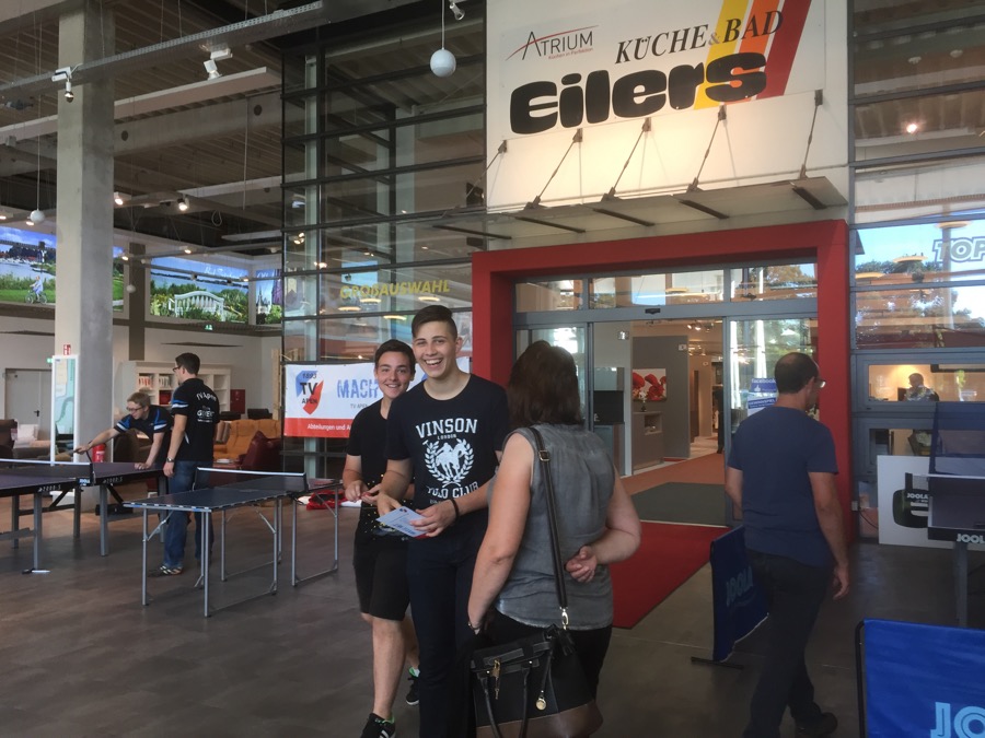 Im Eingangsbereich des Möbelhauses konnten alle Besucher egal ob alt oder jung, den interessanten Sport mal ausprobieren. Die ganze Aktion wurde durch die Initiative unserer Tischtennisabteilung auf die Beine gestellt. Unsere aktiven Spieler betreuten dabei die verschiedenen Angebote, wie zum Beispiel einen Tischtennis-Roboter, ein Geschwindigkeitsmessgerät, mehrere Wettkampftische u.v.m. Dabei konnten sich die Besucher natürlich auch viele hilfreiche Tipps bei unseren Betreuern abholen.