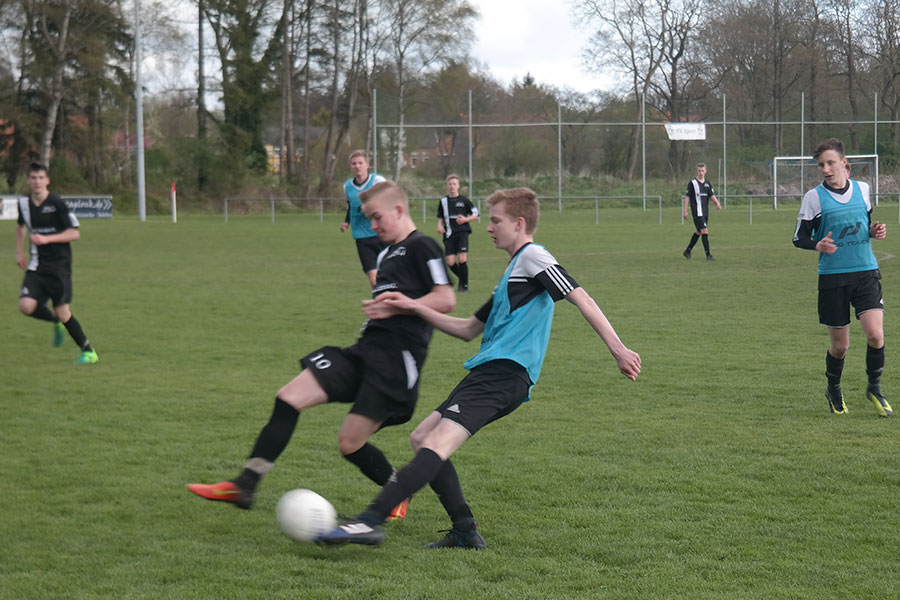 In der zweiten Hälfte legte die Spielgemeinschaft dann jedoch eine ganz andere Intensität und Körpersprache an den Tag. Das Mittelfeld wurde nun komplett von den Apern kontrolliert woraus etliche Torchancen für die Gastgeber resultierten.