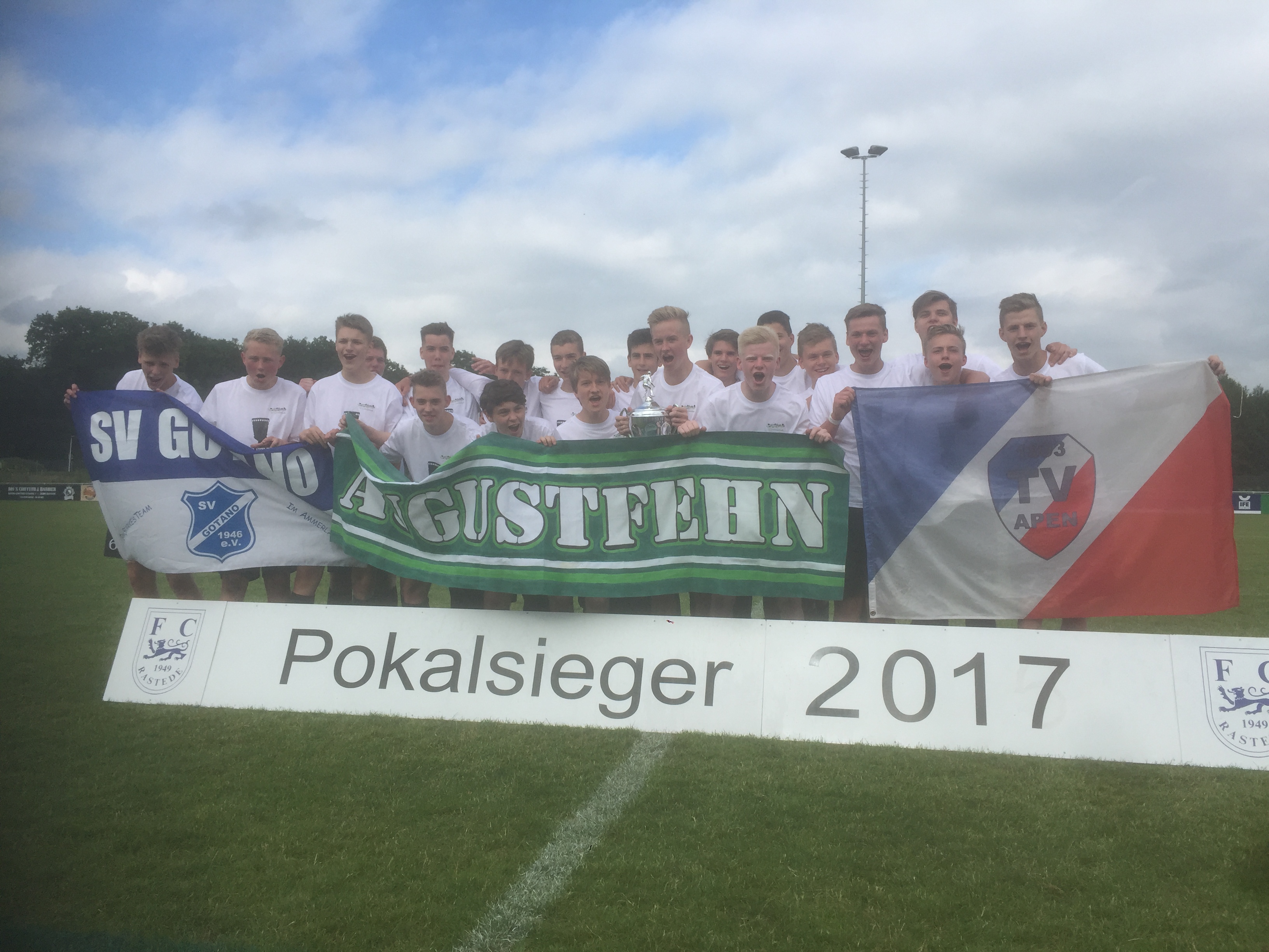 Am gestrigen Samstag machten sich die Teams der JSG U19 und U17 auf den Weg nach Rastede, wo die Finalspiele des Kreispokal stattfanden. Dabei waren so ziemlich alle Spieler auf dem Rasen, welche im vergangenen Jahr noch mit der U17 des TV Apen den Pokal geholt haben. Jedoch spielte die eine Hälfte der Mannschaft nun mittlerweile in der U19, und die andere Hälfte weiterhin in der U17. So konnten beide Teams von der Mission: Titelverteidigung sprechen.