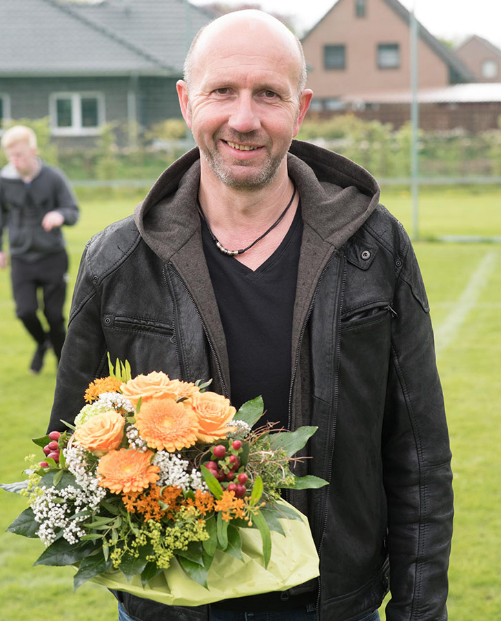 Rainer Fürste war leider kurzfristig verhindert, aber Gerrit Wermter und Frank Ripken hatten Spaß beim gemeinsamen Foto-Shooting mit der Mannschaft.