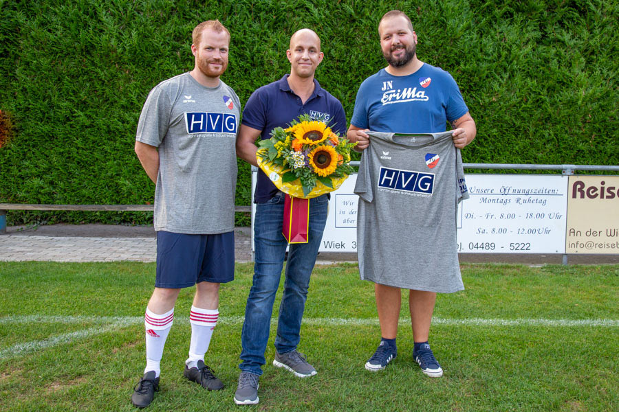 Gestern Abend bekam unsere zweite Herren vor ihrem Spiel im Aper Festungsstadion einen neuen Trikotsatz vom Sponsor Timo Güldener von HVG-Fahrzeugteile überreicht. Ab sofort tritt das Team im schicken grauen Kurzärmeligen an.