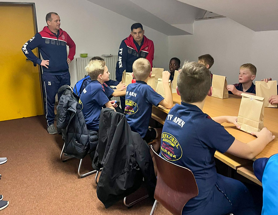 Zum Jahresabschluss haben sich alle E-Jugendkicker zu einem großartigen Weihnachtsturnier mit Eltern in der Aper Halle getroffen. Bevor das Turnier beginnen konnte, bekamen jedoch alle Spieler neue Trikots. Ein großes Dankeschön geht hierbei an den Sponsoren Urfa-Grill aus Augustfehn!