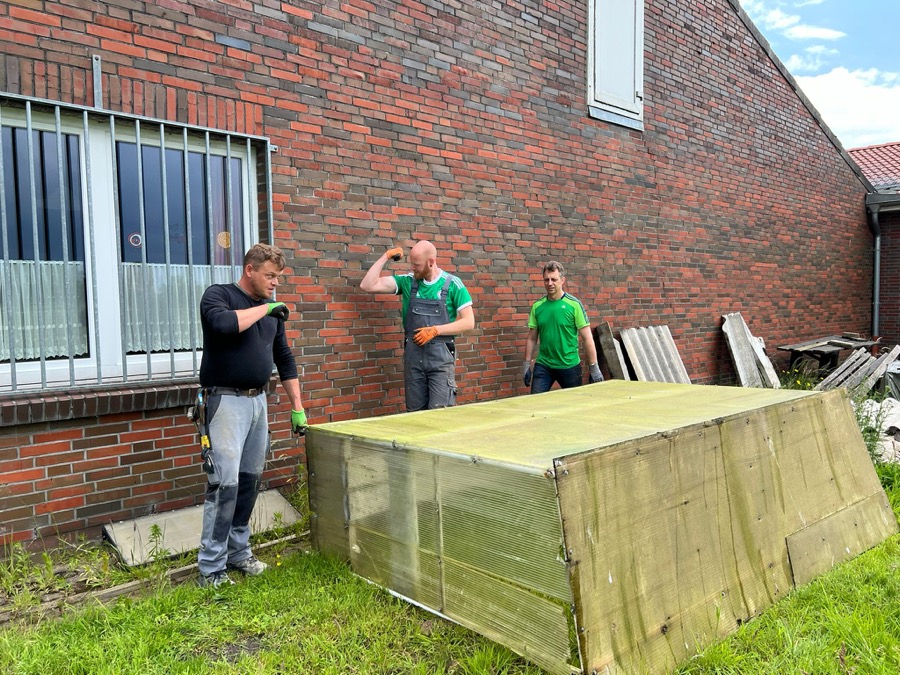 Aus diesem Grunde fanden sich am Wochenende unsere Fußballrecken Uwe Leffers, Dennis Kempen, Markus Precht und Hendrik Claassen auf dem Sportplatz ein und bauten die beiden Hütten fachgerecht ab. Denn wenn die vier - eher defensiv begabten Kicker - etwas gut können, dann ist es kaputtmachen.
