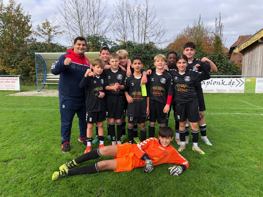 Diesen Schwung hat das Team dann auch ins vorletzte Ligaspiel mitgenommen. Im Derby gegen die JSG Westerstede konnte man trotz erheblicher Ausfälle souverän mit 4:1 gewinnen. In einem eher kampfbetonten Spiel erzielten Julian und Mattis je 2 Tore zum nie gefährdeten Sieg.