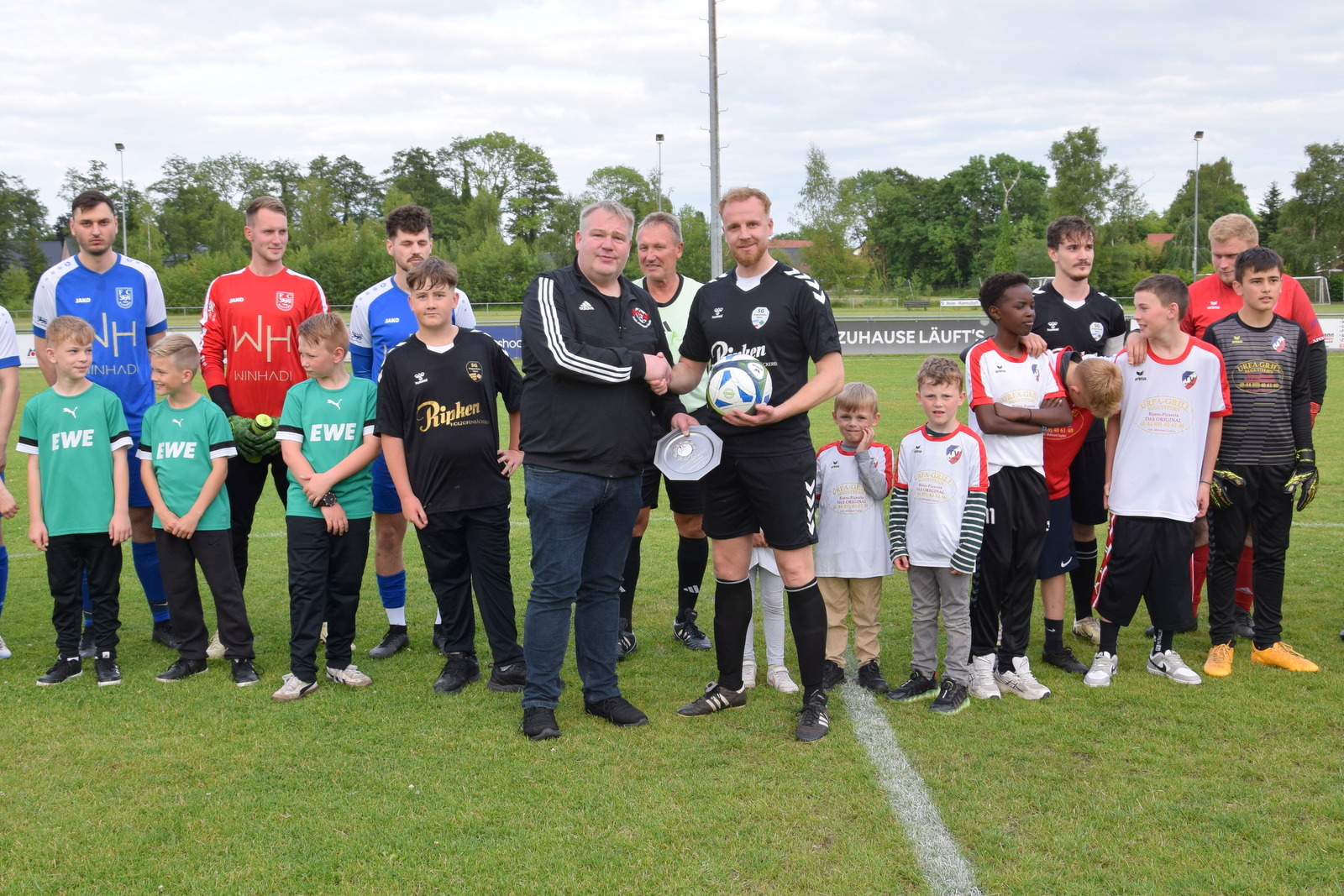 Die Meisterehrung erfolgte vor dem Spiel durch Staffelleiter Timo Schilling aus Sandkrug. Er gratulierte den vereinigten Augustfehnern und Apern zur verdienten Meisterschaft. Dann überreichte er an Mannschaftsführer Kristof Juraschek die Meisterschale und einen Spielball und wünschte für die nächste Saison viel Erfolg in der 1. Kreisklasse.