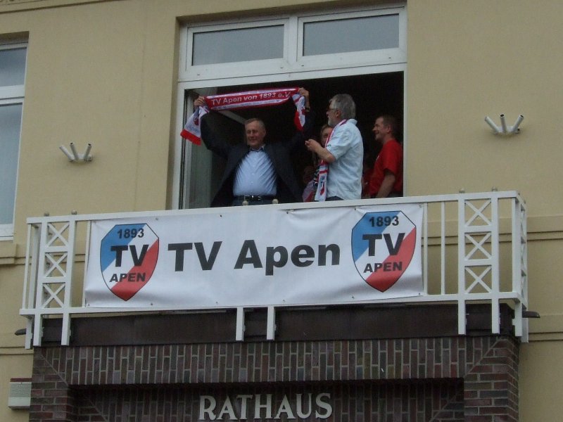 Nachdem man auch das letzte Spiel am gestrigen Abend vor herrlicher Kulisse gegen Mitaufsteiger Halsbek mit 3:2 gewinnen und so die wahnsinnige Serie auf 18 Siege in Folge ausbauen konnte, durfte heute bei Planwagenfahrt und Empfang auf dem Rathausbalkon durch Bürgermeister Ulken diese unglaubliche Saison gefeiert werden. Kurioserweise konnte die Augustfehner F-Jugend durch den überraschenden Sieg unserer Mannschaft gegen Westerstede am Donnerstag und einen eigenen Sieg am heutigen Samstag die Meisterschaft in der Kreisliga erreichen. Kurzerhand wurde das befreundete Team in den Planwagen eingeladen und durfte sich ebefalls auf dem Rathausbalkon von den Fans feiern lassen.