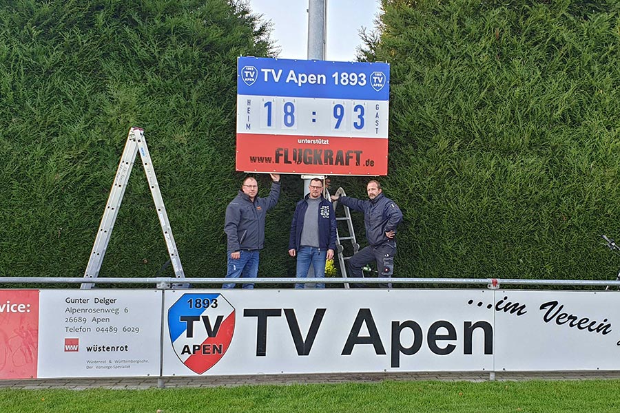Ralf Reddel haben wir es insbesondere zu verdanken, dass die Zuschauer im Festungsstadion zukünftig seltener nach dem Zwischenstand fragen werden, denn am Freitag wurde eine Anzeigetafel am Flutlichtmast montiert!