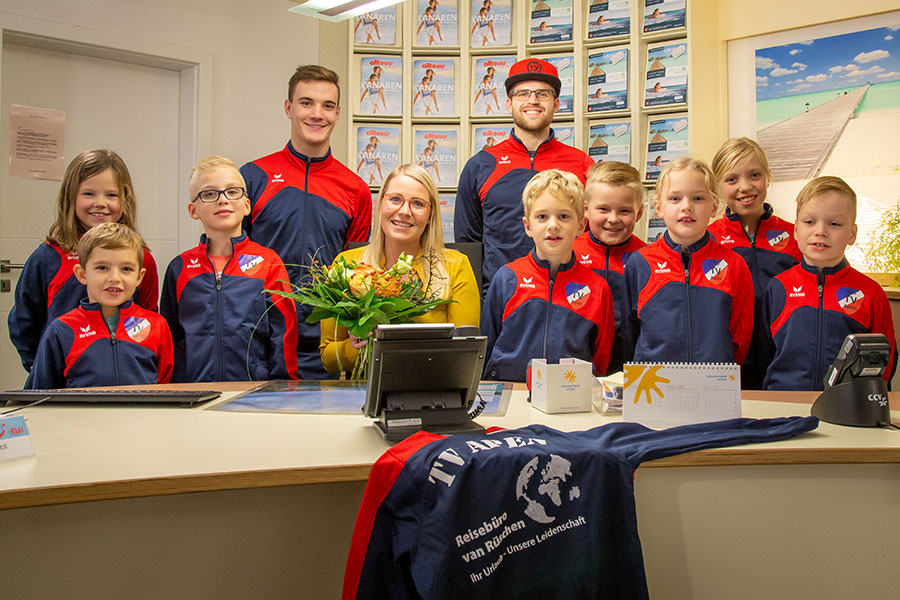 Das Reisebüro van Rüschen mit seiner Inhaberin Lena Börjes konnte für unsere F-Jugend als neuer Sponsor gewonnen werden. Lena sei Dank, dürfen die Mädels und Jungs daher nun in tollen neuen Trainingsanzügen ihrem Lieblingssport nachgehen.