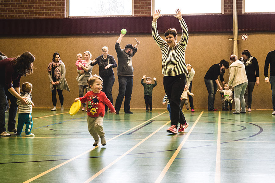 Jeden Donnerstag um 15:30 Uhr sind Apens Spielplätze wie leergefegt. Denn dann ruft Irmgard Neumann zum wöchentlichen Babyturnen in die Aper Sporthalle. Und die Kleinsten kommen seit Jahren in Scharen.
