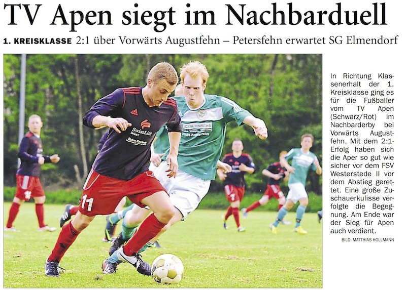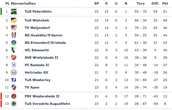 Chance genutzt! Unsere Erste konnte gestern Abend beim Nachbarn in Augustfehn drei Punkte einfahren und sich so der gröbsten Abstiegssorgen entledigen.