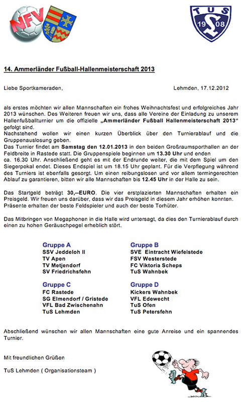 ein erfolgreiches Jahr 2012 geht auch für den TV Apen in die letzte Runde. Wenn wir gemeinsam auf die vergangenen Monate zurückblicken, so können wir doch auf erfreuliche Ereignisse und Ergebnisse sehen. In allen Abteilungen haben sich viele Erfolge in Form von Meistertiteln, guten Platzierungen usw. ergeben. Weiterhin konnten wir das Angebot in den Hallensportarten weiter verbessern und auch in den Jugendabteilungen aller Ballsport-Abteilungen ist ein toller Aufwärtstrend zu verzeichnen.