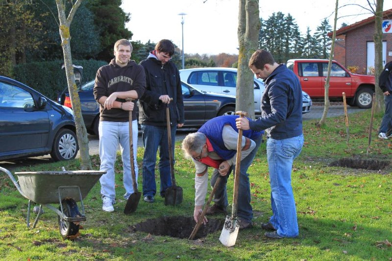 Glücklicherweise handelte es sich in diesem Fall um dressierte Exemplare, die unter Anleitung von Schweer Meyer Löcher für den neuen Ballfangzaun sowie einen Handlauf ausgehoben haben.