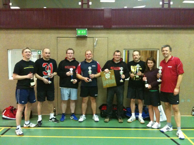 34 Teilnehmerinnen und Teilnehmer, 8 Gruppen, 12 Platten und von Noppe lang bis Antitop alles an Schlägermaterialen am Start, was das Tischtennisherz höher schlagen lässt.