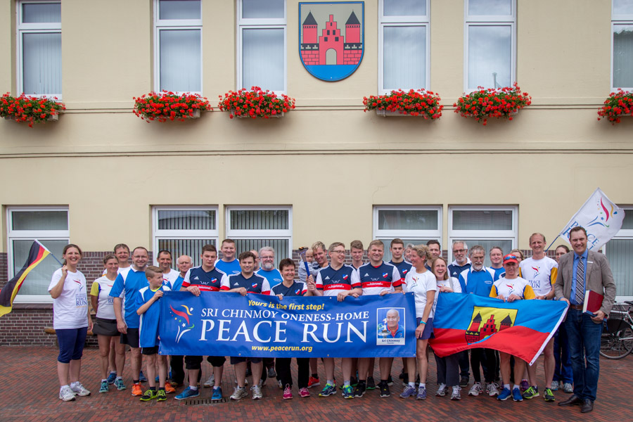 Der Oneness-Peace-Run, im Jahre 1987 von Siri Chinmoy ins Leben gerufen, machte heute Station in Apen. Da waren wir natürlich neugierig und liessen es uns nicht nehmen, ein Stückchen mitzulaufen.