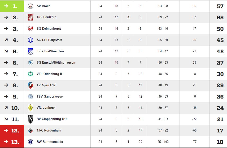 Unsere U17 nutzt den ersten Matchball zum Klassenerhalt und schlägt den 1. FC Nordenham mit einem auch in der Höhe verdienten 10:0 (5:0) und klettert dadurch auf Platz 7.